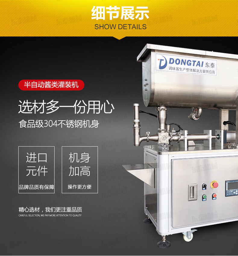 1.防滴漏灌裝頭:316L不銹鋼精制而成,專為醬料灌裝設計,通過型好,內外精拋,真正的食品級