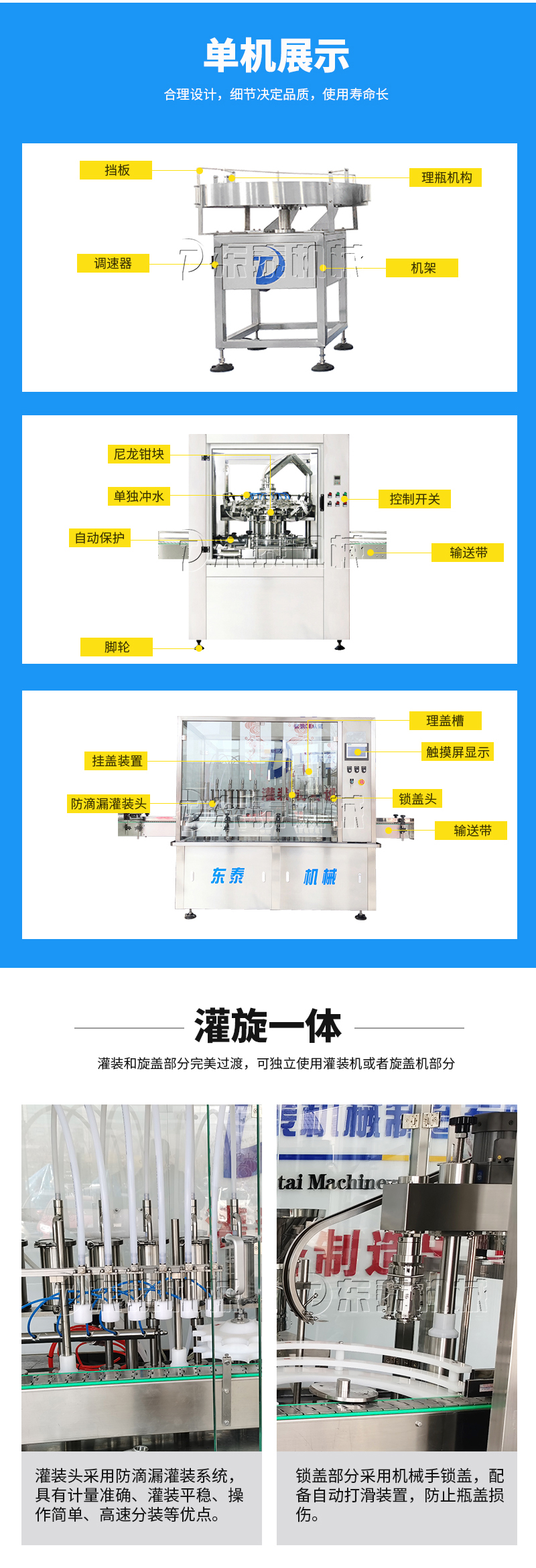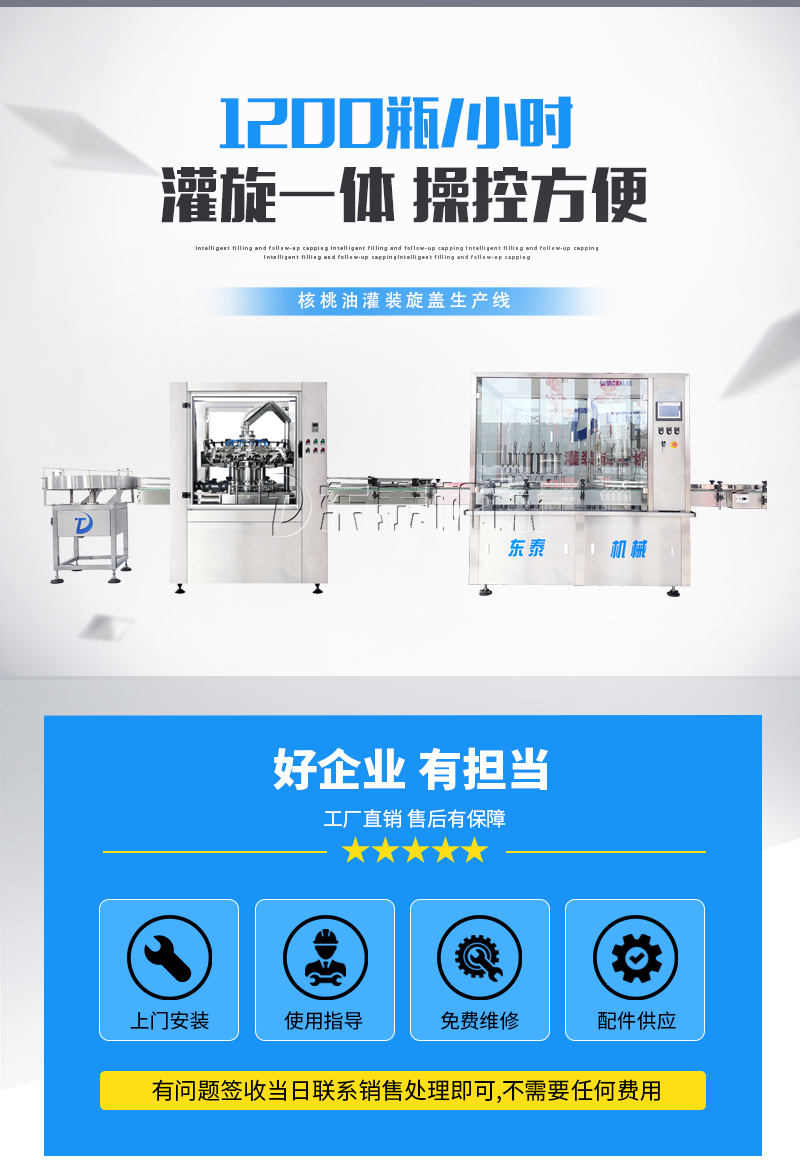 本灌裝流水線設備具有穩(wěn)定可靠、自動化水平高,相比同類產品有著更長的使用年限,維護簡單,整線中各設備的協調性、連貫性強,整線設計合理等特點。灌裝設備采用獨家專利系統(tǒng)結構,為當今行業(yè)內水平,整