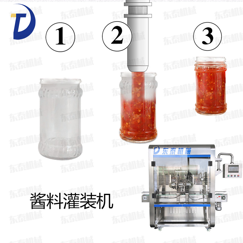 辣椒醬灌裝機采用活塞式灌裝原理,適用于調味品中帶顆粒并且濃度較大的辣椒醬、豆瓣醬、花生醬、香菇醬、果醬、牛油火鍋底料、紅油火鍋底料、蝦醬等較為粘稠醬類的灌裝。
