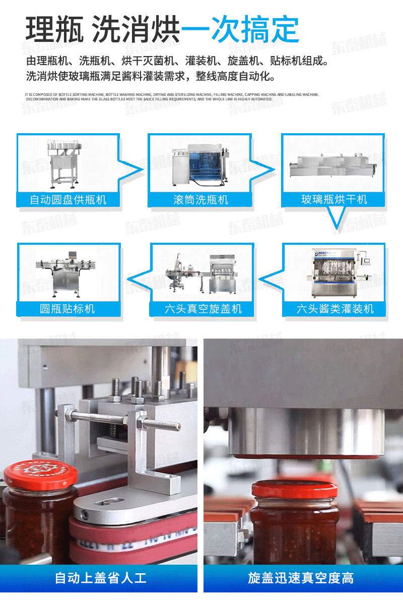 為了能夠更好的服務社會我們東泰辣椒醬灌裝機踏上了多樣化生產道路,并且現在已經有了一定的顯著成績,原來的傳統設備由于功能有所局限,只能灌裝普通的醬料,而經過我們改進后的全自動辣椒醬灌裝機能夠實現對市場上絕大多數的醬料的灌裝,尤其是那些含顆粒的顆粒漿狀流體、半流體、膏體、漿狀類的物料灌裝,如辣椒醬、牛肉醬、牛肉大醬、豆瓣醬、芝麻醬、果醬、火鍋底料的等物料的灌裝,在市場中,辣椒醬灌裝機有眾多的機會來展現出自我的風采,不僅是因為再市場中的廣泛應用,還有這十分出眾的全自動化的一鍵式的完成一系列的工作流程,更能夠凸顯出市場對于它自身的需求。