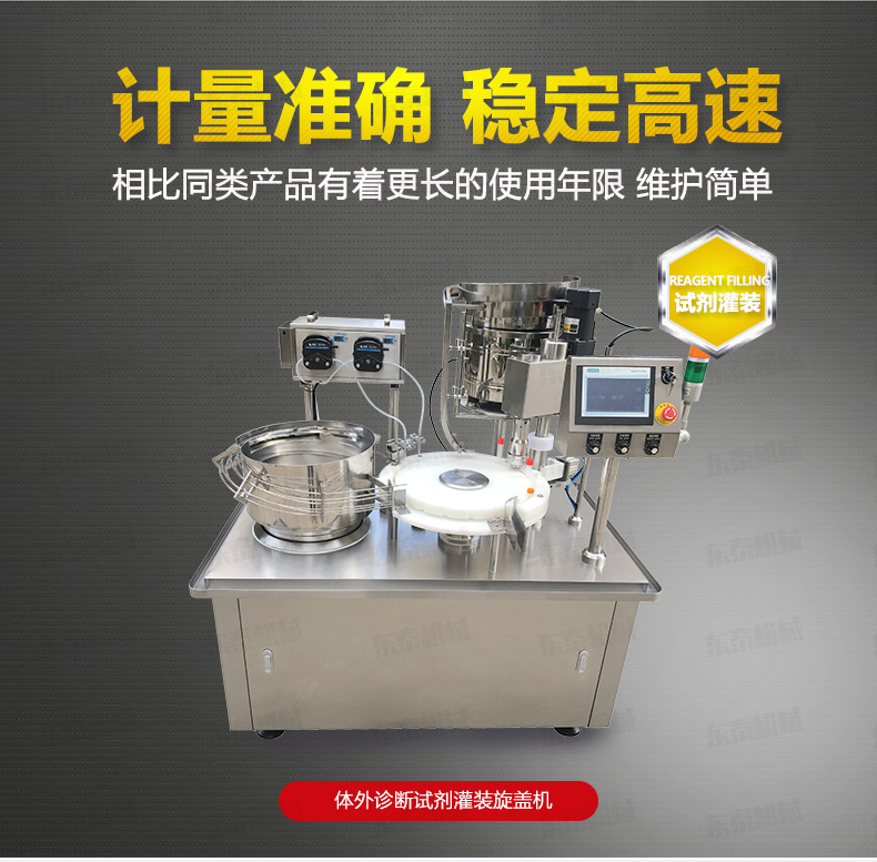 時代發展中科學技術飛速的進步著,使得各行業發展都迅速的壯大起來。現在診斷試劑灌裝旋蓋一體機不斷跟隨市場的需要前行被越來越多的應用在食品、醫藥、化工、日化等各個行業中有著更加明顯的應用,則是更加凸顯液體灌裝機的優勢,診斷試劑灌裝旋蓋一體機不僅是在自動化方面較為突出,售后服務方面可根據客戶的實際生產需求專業定制個性化需求,來贏得客戶的支持。